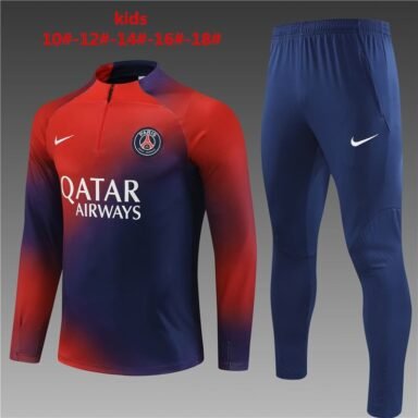 23/24 PSG short zipper red and blue kids kit 10-18