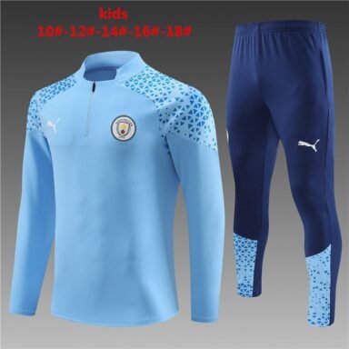 23/24 Manchester city short zipper light blue with black kids kits10-18