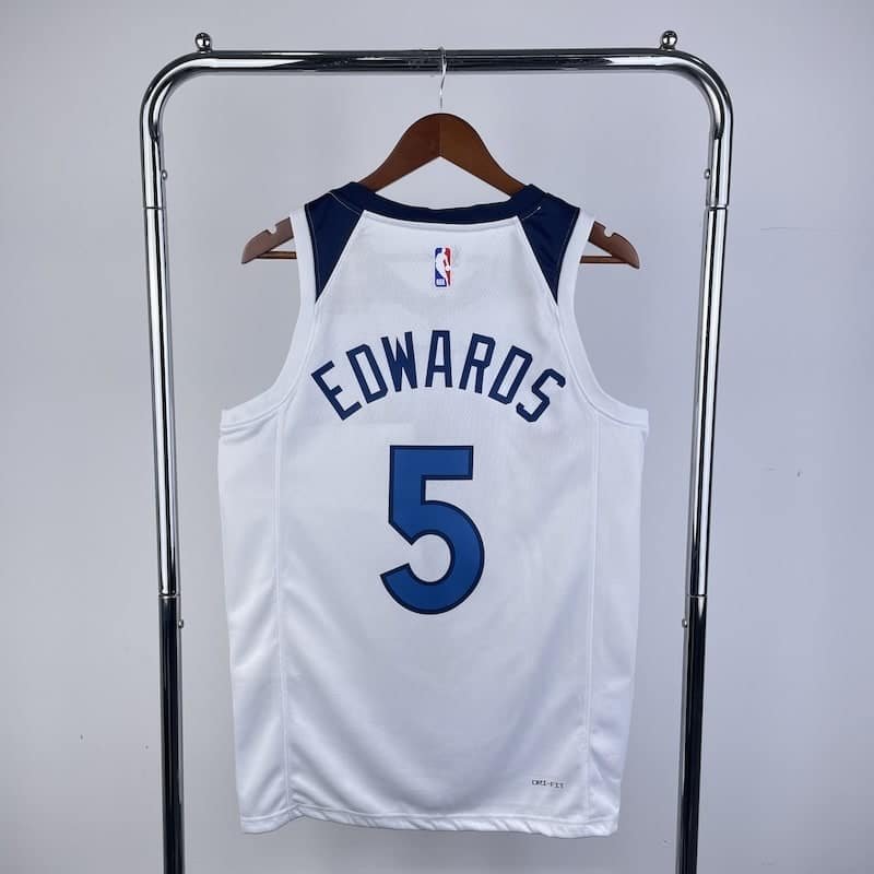23 season Timberwolves Home White No. 5 Edwards S-2XL