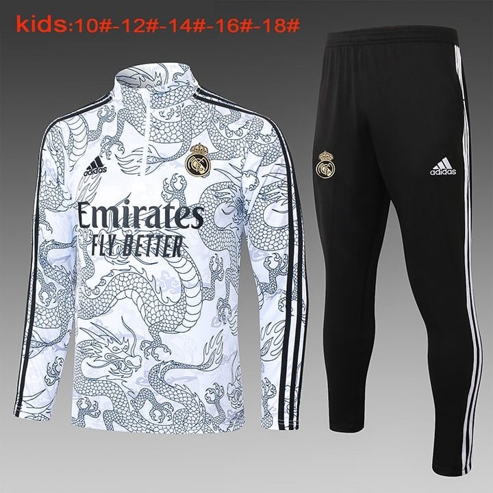 E768 23/24 Real Madrid short zipper Chinese dragon white kids kit 10-18